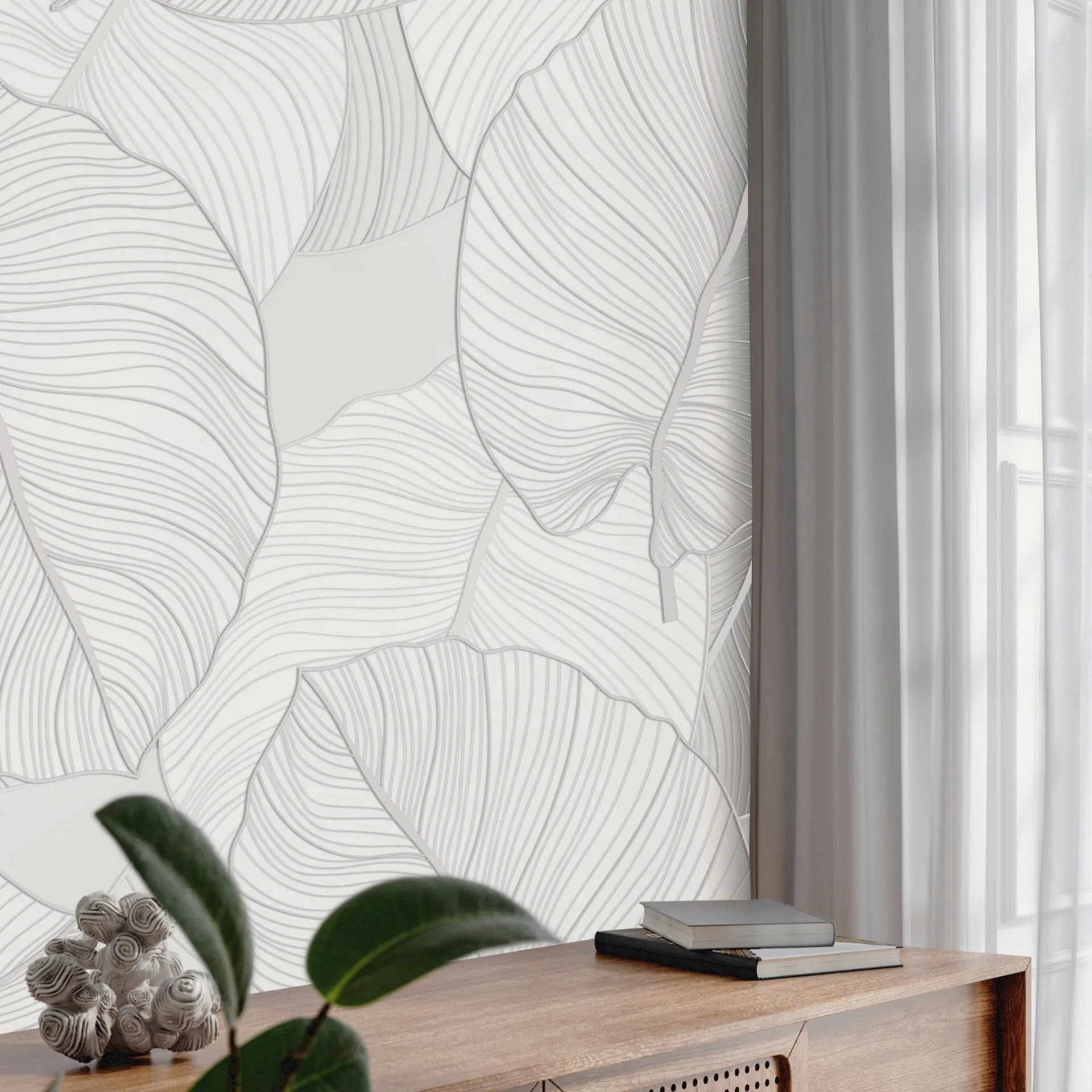 Vuoi valorizzare un'atmosfera moderna? Scopri la Carta da parati 3d materica di Pintdecor: il modello Large Leaves ti sta aspettando!