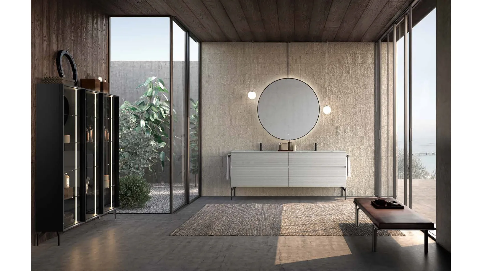 Arreda il tuo bagno moderno al meglio con M3 System 306, mobili bagno a terra e complementi in laccato opaco di Baxar.