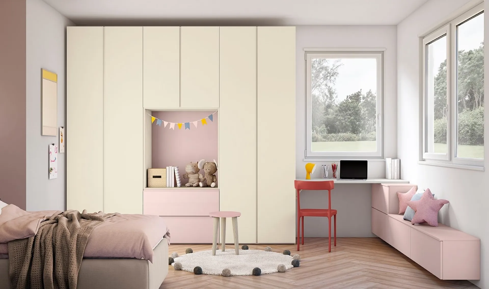 Camerette componibili per bambine: scopri il modello in melaminico Golf K13 di Colombini Casa per stanzette moderne.