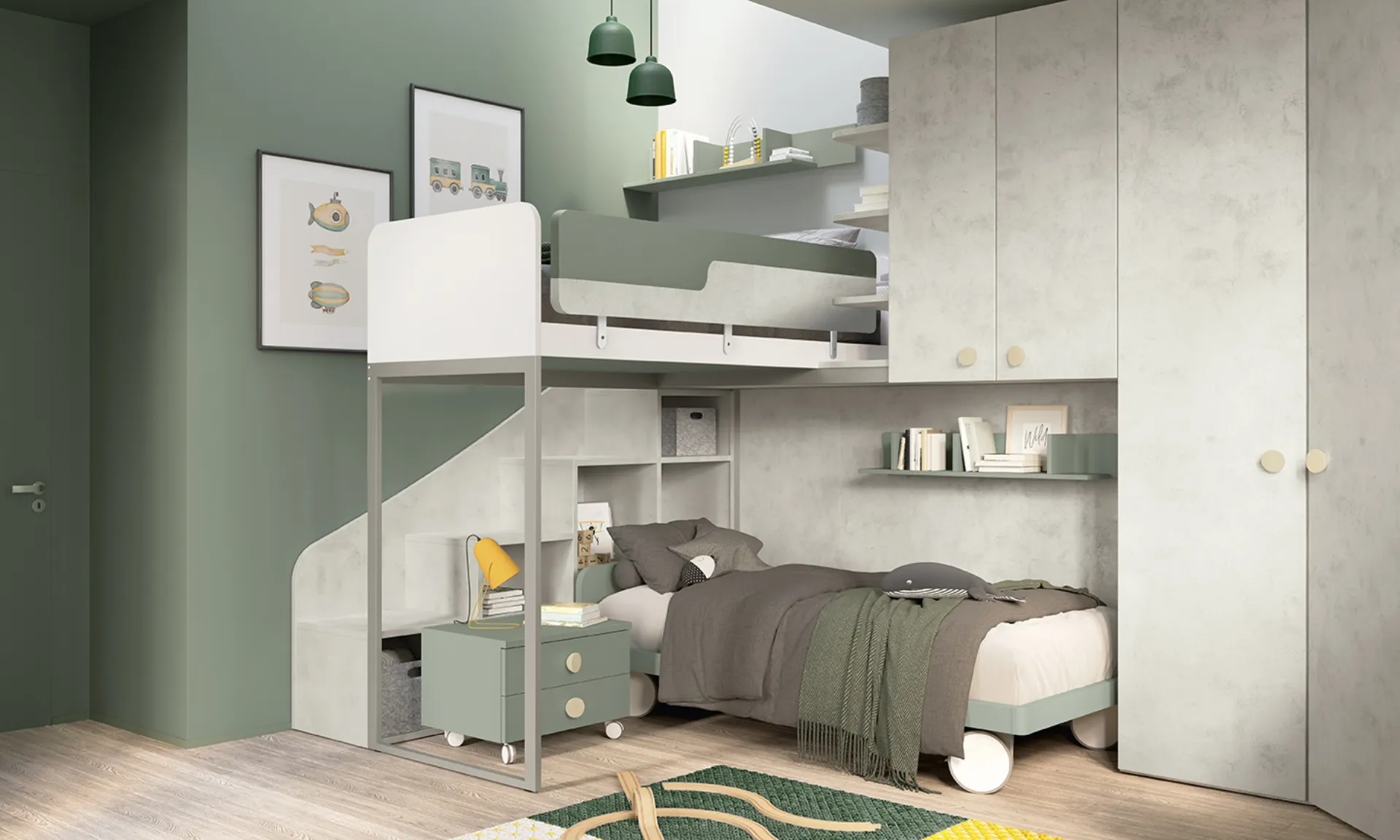 Arreda l'ambiente dei piccoli insieme a noi con le Camerette a soppalco moderne come il modello Golf K49