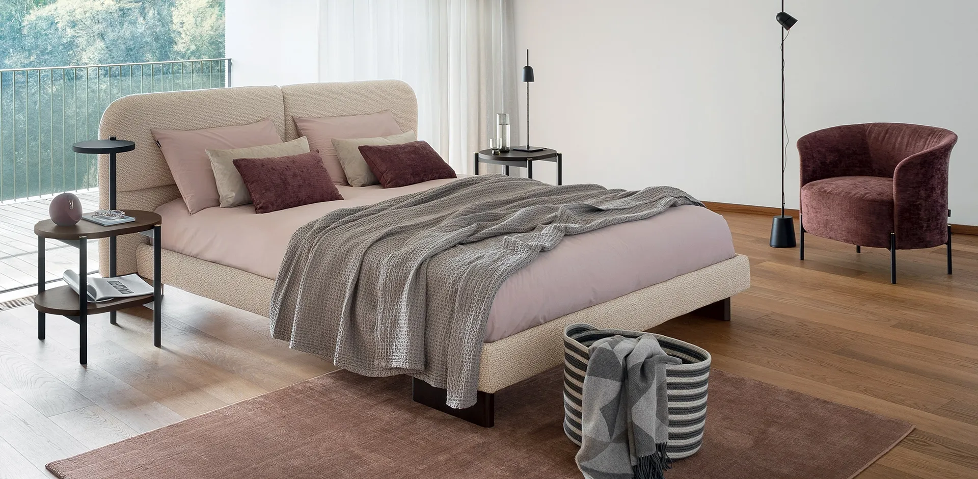 Il Letto in tessuto Kilian round di Calligaris valorizza la camera garantendoti il sonno più profondo e un'accurata ricerca stilistica