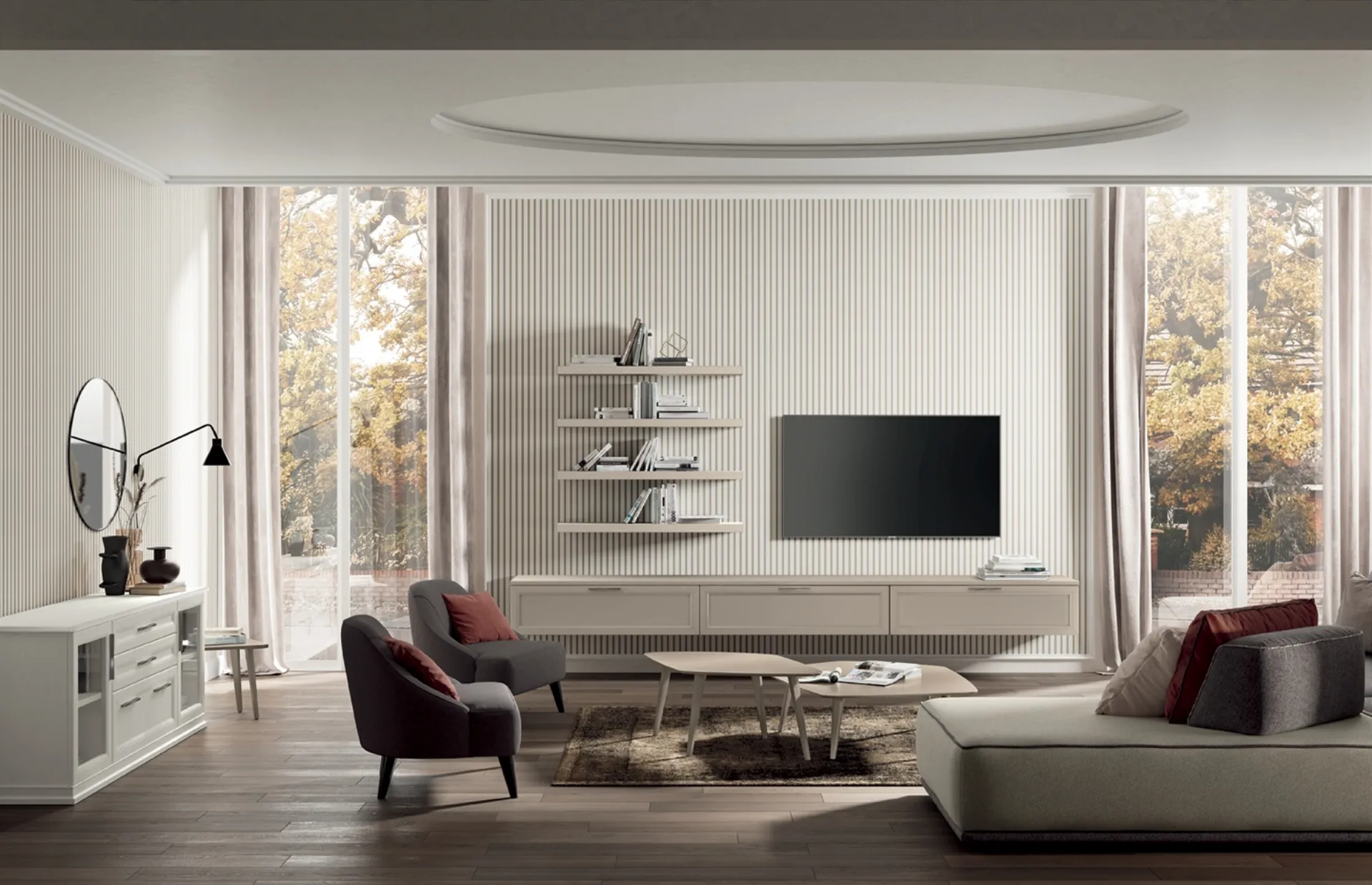 Se vuoi ultimare un living pratico e dinamico dalle linee classiche, ti presentiamo la parete attrezzata Arcadia AS009 Colombini Casa.