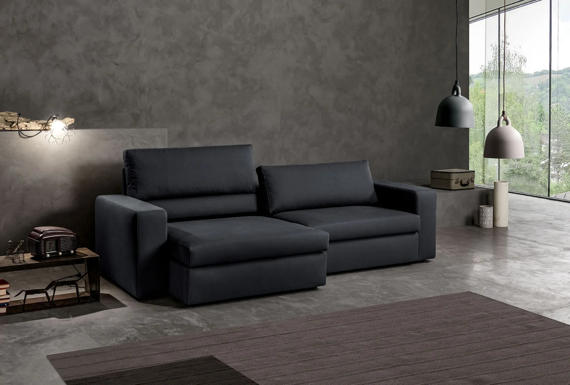 Divano con seduta e schienali regolabili in velluto grigio