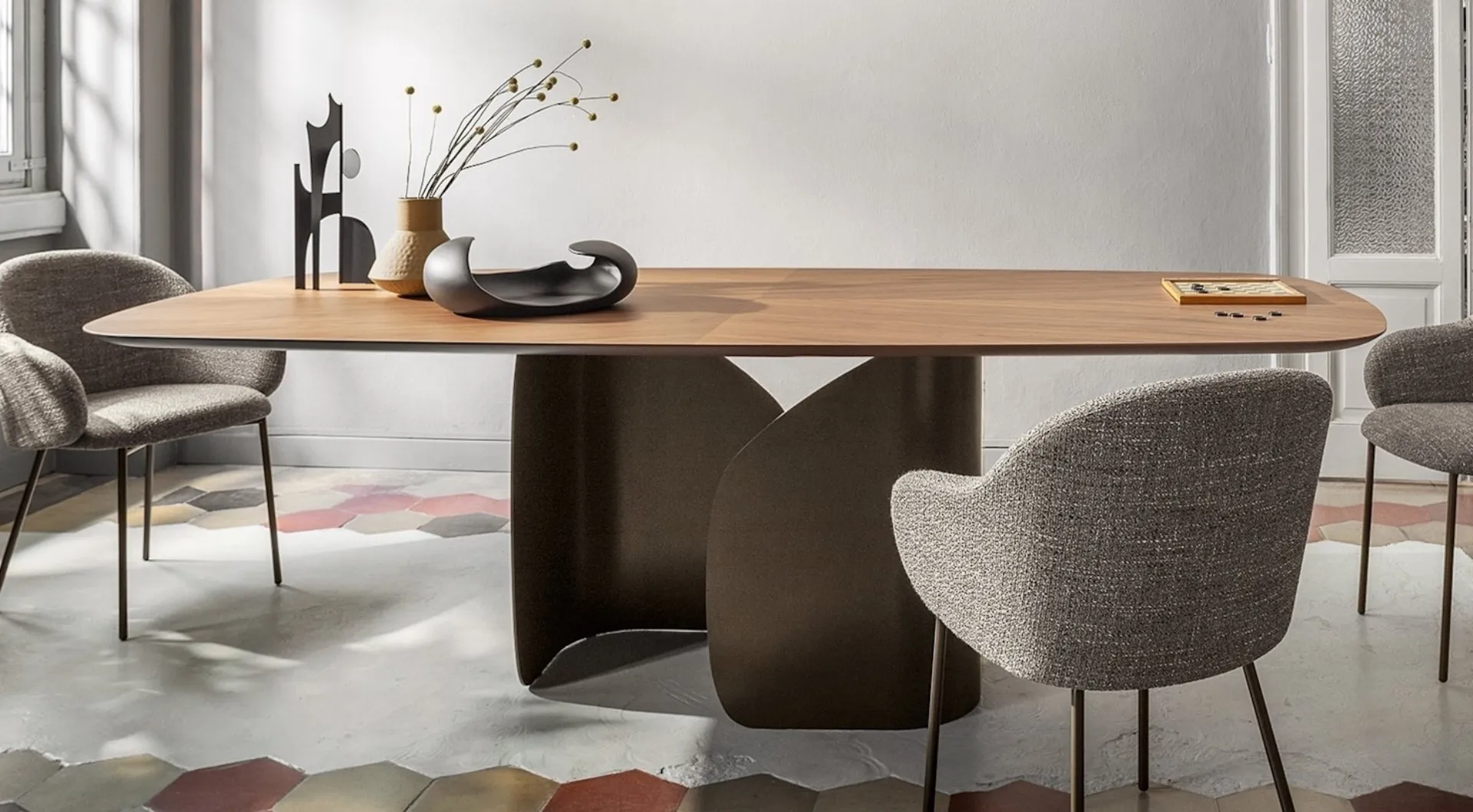 Vuoi completare spazi design? Ottieni informazioni sui tavoli design fissi: il modello da pranzo Twins legno ti sta aspettando.