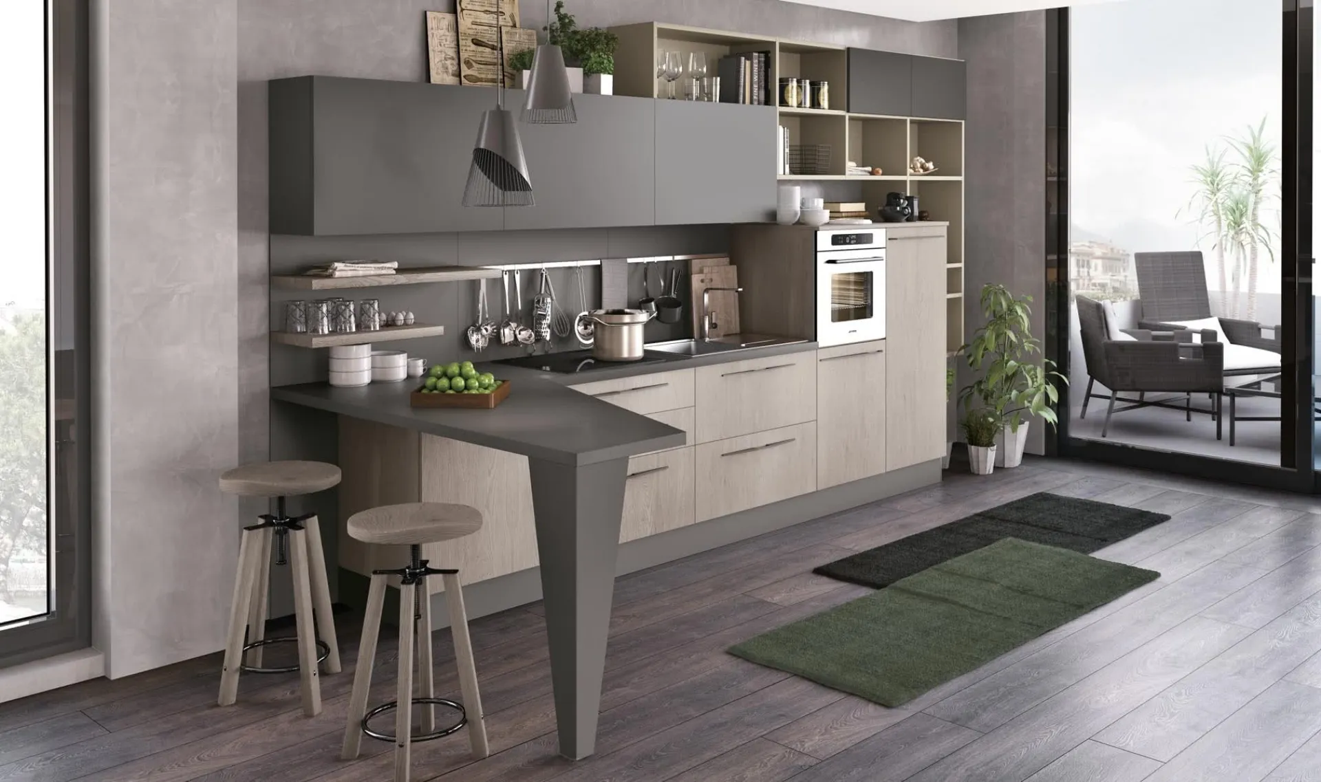 Cucine Moderne con penisola: clicca e scopri un ricco catalogo di soluzioni del marchio Lube, tra cui il modello Clover 18.