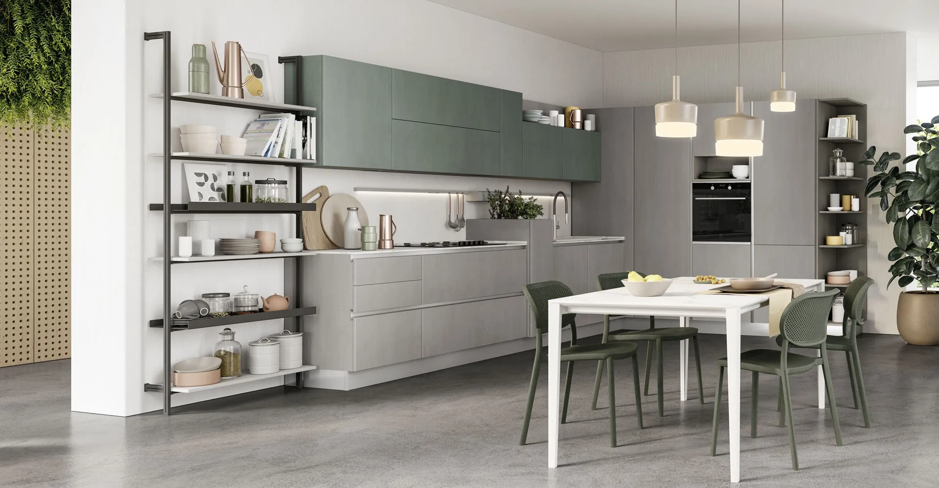 Modello moderno in melaminico Unica 10 di Lube che è appartenente alla collezione di Cucine ad angolo