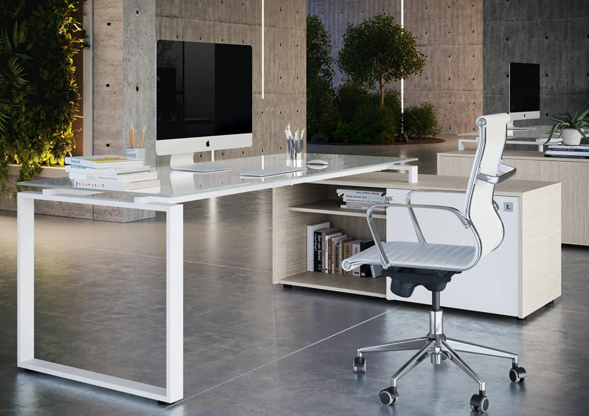 Vuoi allestire gli spazi di lavoro? Eccoti varie proposte di scrivanie direzionali in vetro, come il modello Loft Executive Anello Chiuso di Colombini Office.